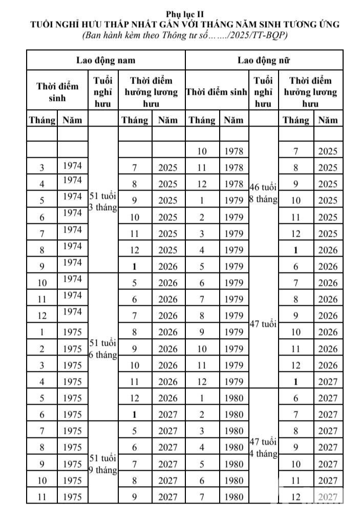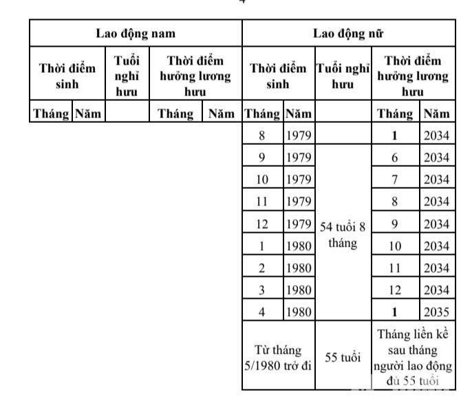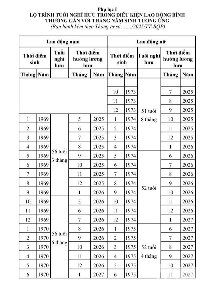 a) Lộ trình điều chỉnh tuổi nghỉ hưu của người lao động quy định tại Nghị định của Chính phủ thực hiện theo Phụ lục I ban hành kèm theo Thông tư này.