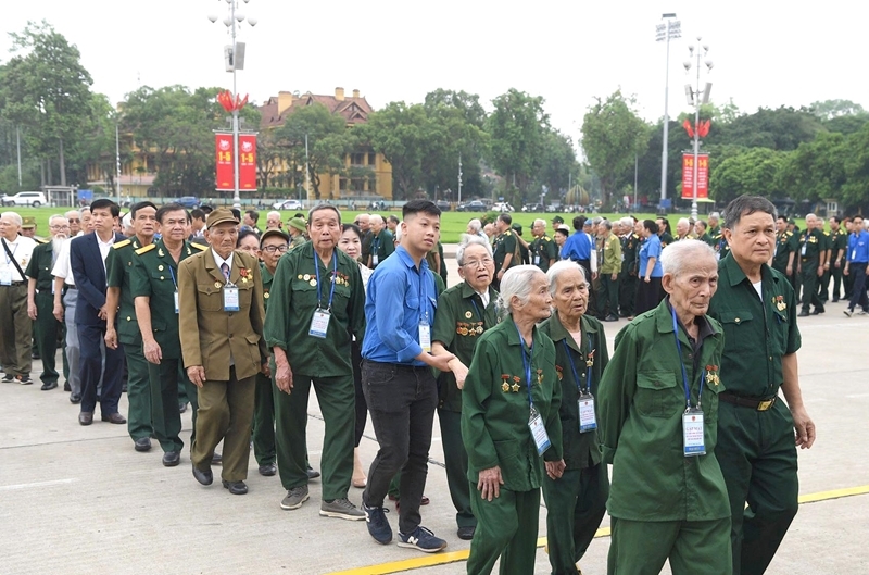 Các cựu chiến binh, cựu thanh niên xung phong vào Lăng viếng Chủ tịch Hồ Chí Minh. Ảnh: hoiccbvietnam.vn |