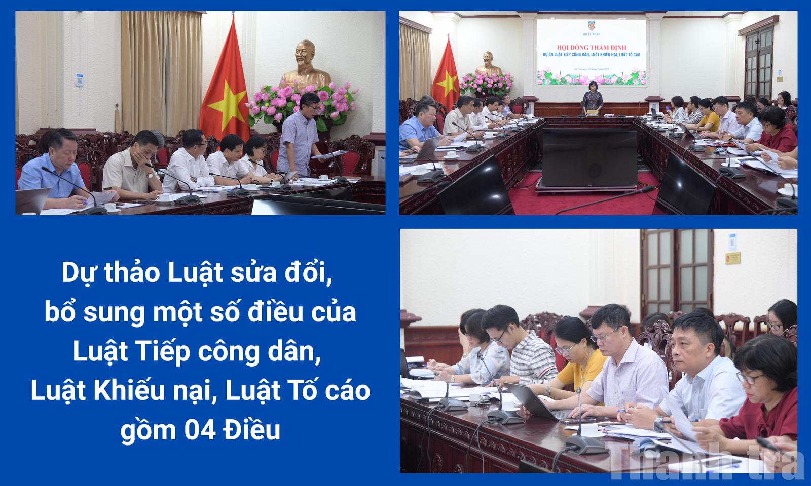 Chiều tối 9/9, Bộ Tư pháp họp Hội đồng thẩm định dự án Luật sửa đổi, bổ sung một số điều của Luật Tiếp công dân, Luật Khiếu nại, Luật Tố cáo (dự thảo Luật) dưới sự chủ trì của Thứ trưởng Đặng Hoàng Oanh.