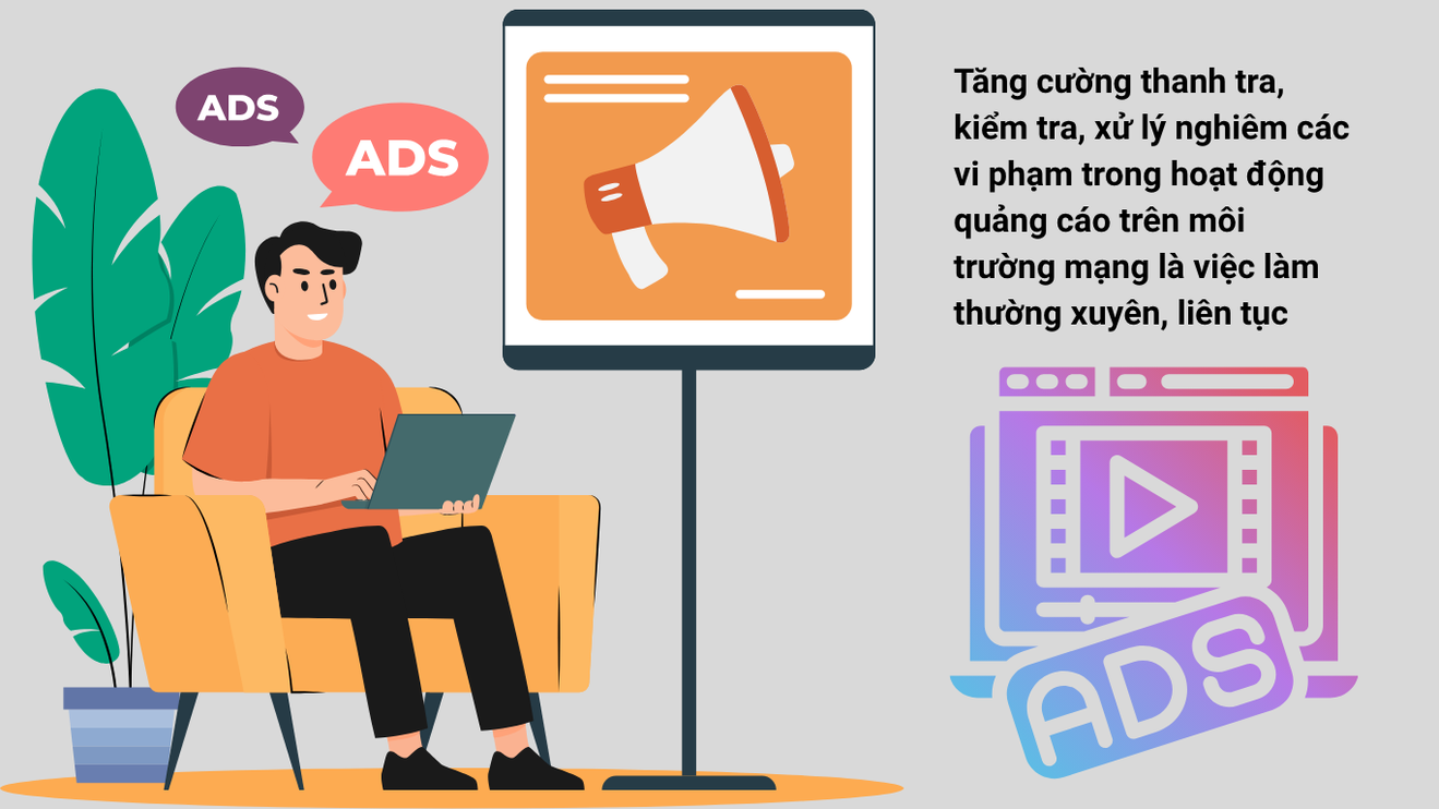 Đặc biệt, việc tăng cường thanh tra, kiểm tra, xử lý nghiêm các vi phạm trong hoạt động quảng cáo trên môi trường mạng là việc làm thường xuyên, liên tục; chỉ đạo Bộ VHTTDL tiếp tục triển khai thực hiện đồng bộ, có hiệu quả các giải pháp đã đề ra.