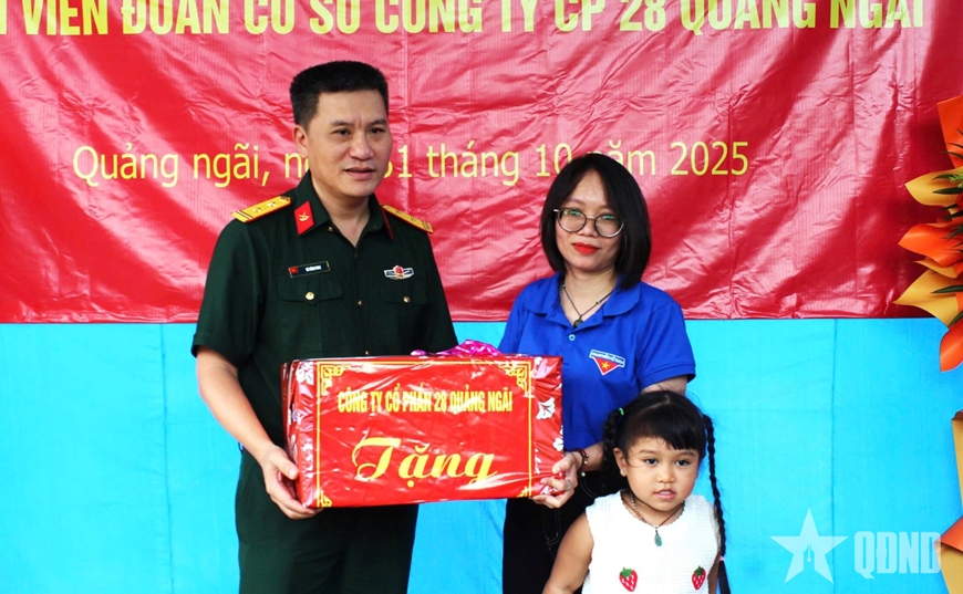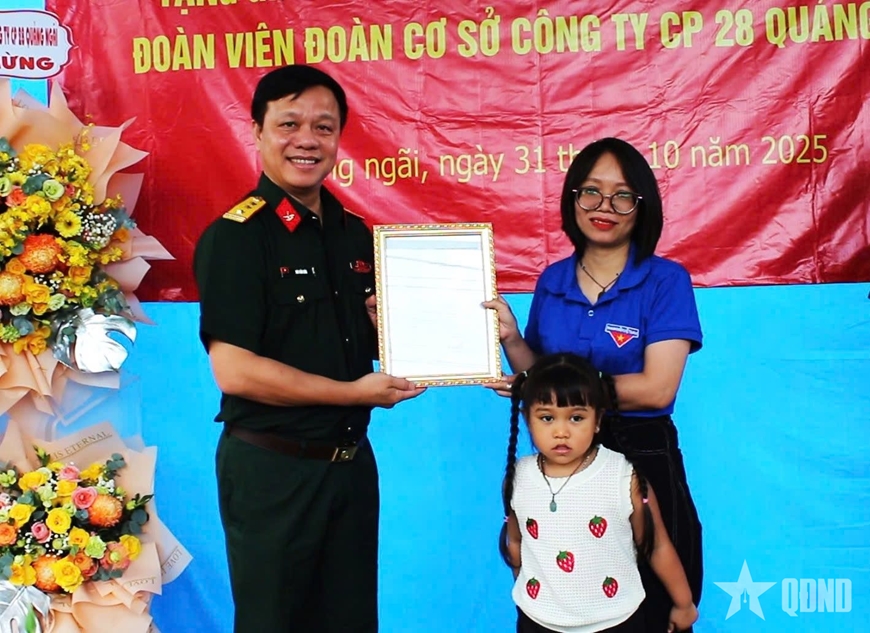 Ngày 31-10, tại thôn 5, xã Mỏ Cày, tỉnh Quảng Ngãi, thừa ủy quyền của thủ trưởng Tổng cục Hậu cần - Kỹ thuật, Tổng công ty 28 tổ chức khánh thành “Ngôi nhà 100 đồng” tặng đoàn viên Phạm Thị Thúy Hường (Nhân viên sơ đồ, Phòng Kỹ thuật, Công ty Cổ phần 28 Quảng Ngãi).