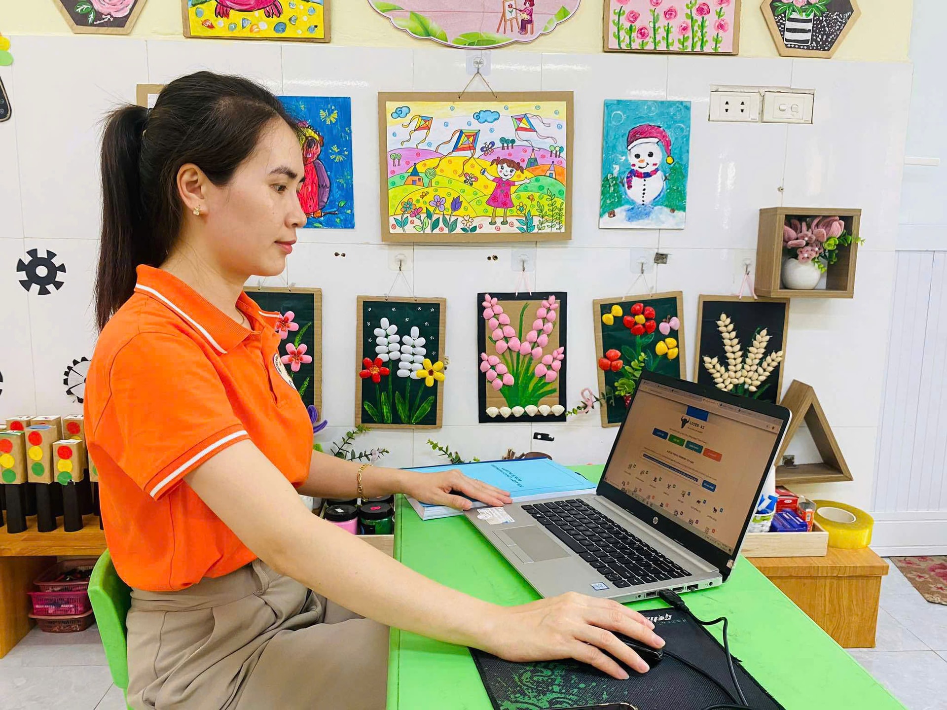 Giáo viên Trường Mầm non Hồng Hà (xã Hồng Hà, huyện Đan Phượng) ứng dụng AI vào soạn bài giảng. Ảnh: Nguyễn Bền