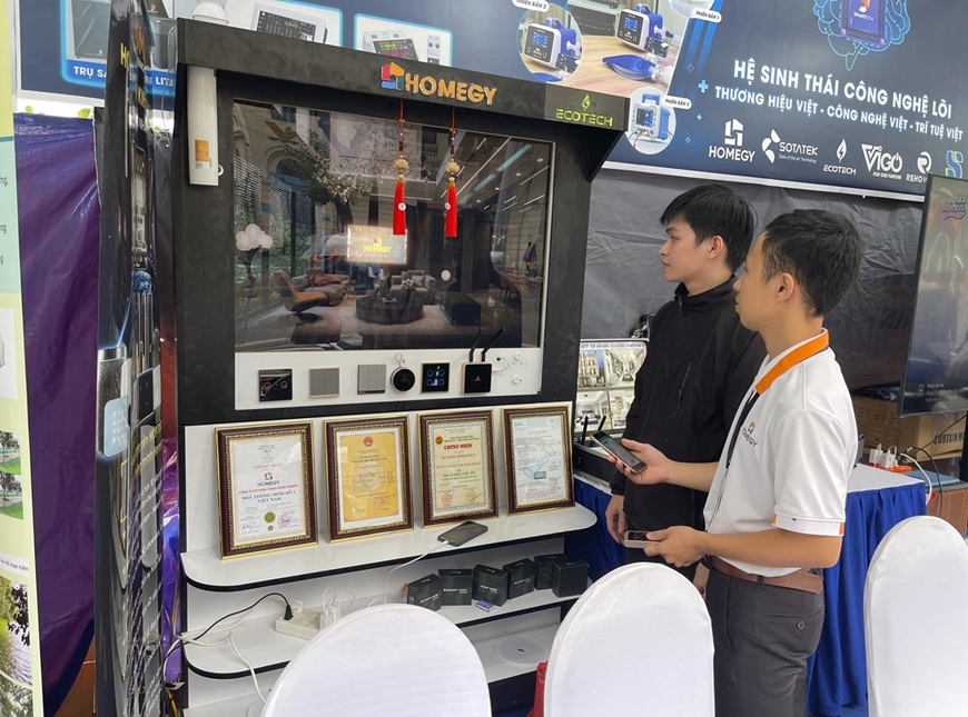 | Người dân tìm hiểu các ứng dụng "nhà thông minh" . |