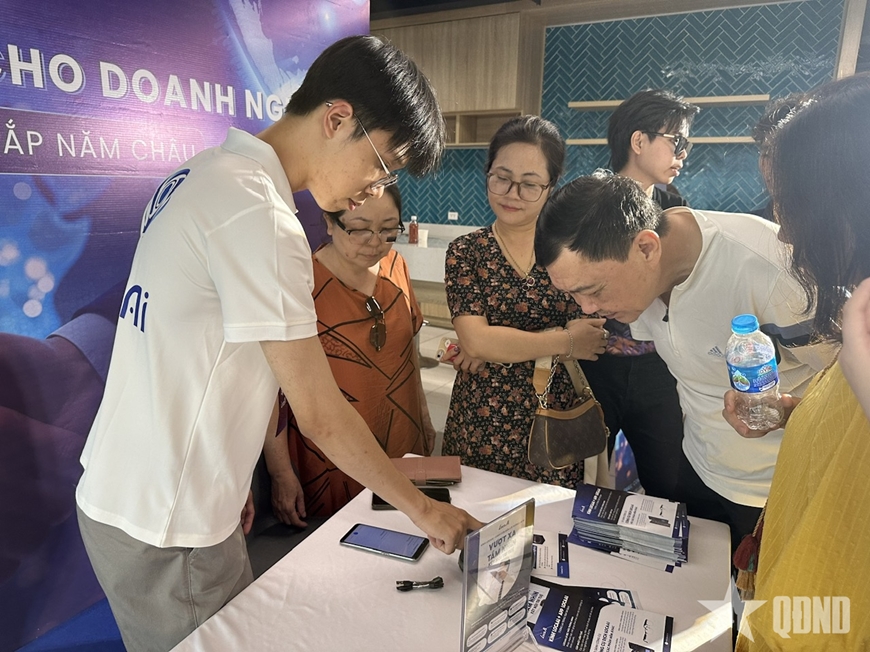 | Các đại biểu trải nghiệm nền tảng trí tuệ nhân tạo ngôn ngữ mang tên Loca AI. |