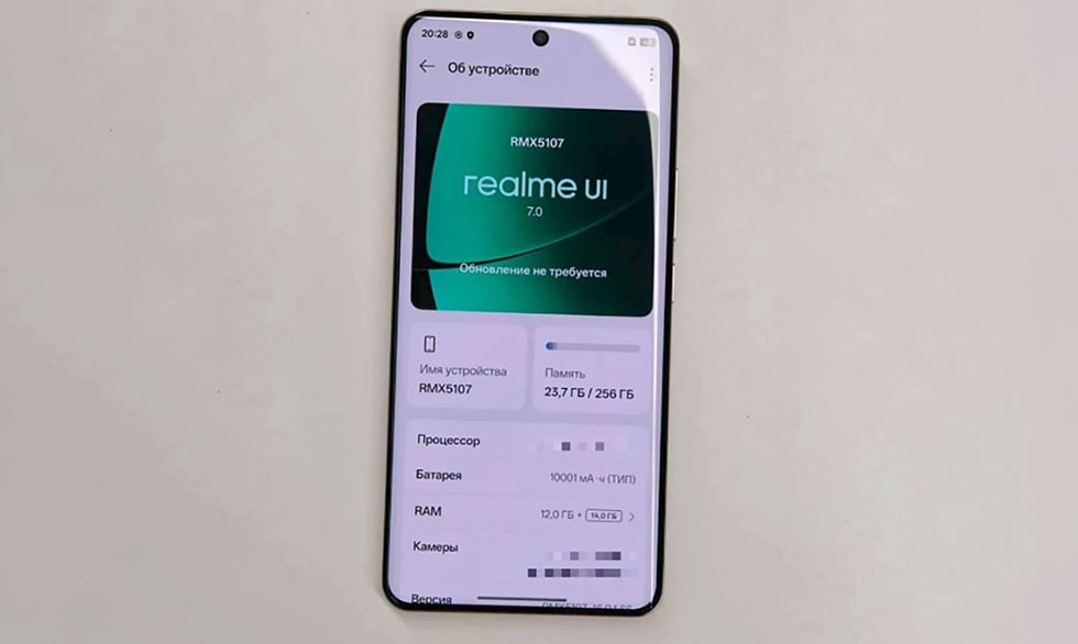 Theo thông tin từ một blog công nghệ tại Nga, thiết bị mới của Realme có số hiệu model RMX5107. Hình ảnh rò rỉ cho thấy máy sở hữu cấu hình phần cứng mạnh mẽ với 12GB RAM và bộ nhớ trong 256GB. Đáng chú ý, thiết bị này sẽ được cài đặt sẵn giao diện Realme UI 7.0 ngay khi xuất xưởng.