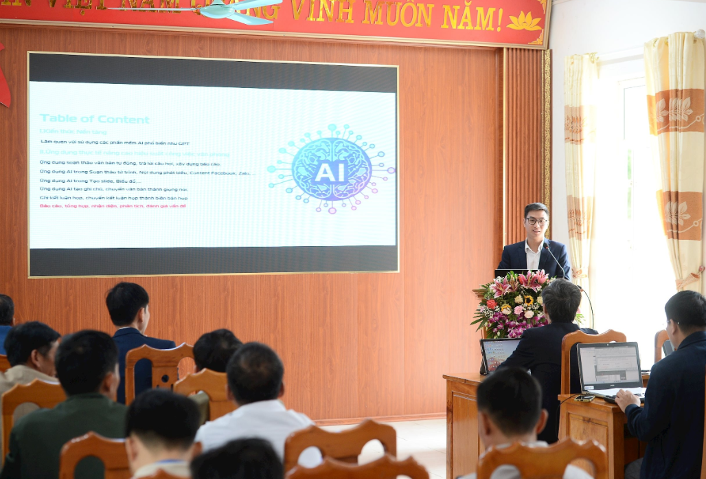 Những ngày đầu tháng 11, căn nhà văn hóa bản Bo bỗng đông vui khác thường. Không phải vì lễ hội hay đám cưới, mà vì một lớp học đặc biệt – lớp “bình dân học vụ số”. Ở đó, nhân sự của Viettel Lai Châu trực tiếp hướng dẫn cán bộ xã và trưởng bản sử dụng AI để làm những việc tưởng chừng phức tạp, như: soạn thảo bài phát biểu, viết báo cáo, làm slide thuyết trình, hay tra cứu thông tin nhanh bằng các công cụ như ChatGPT và Gamma.