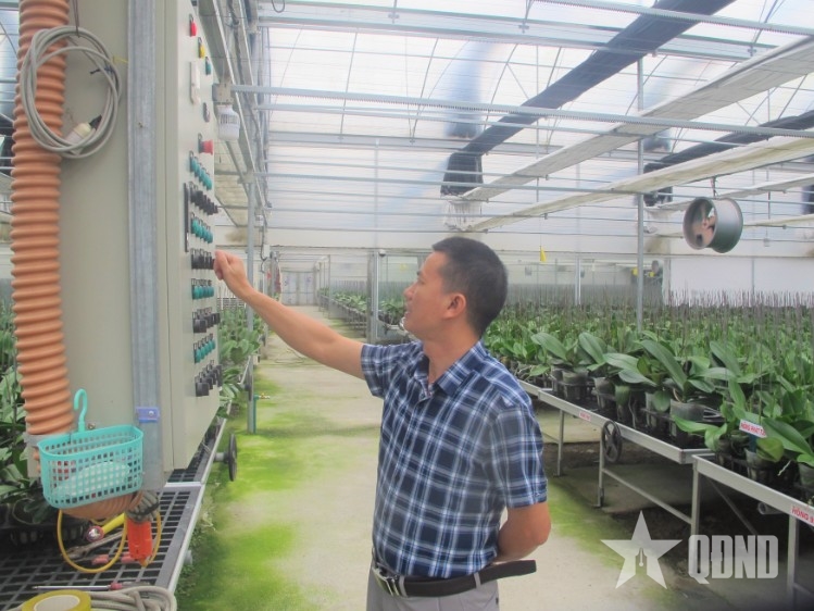 Anh Phạm Văn Huy, Giám đốc Công ty TNHH Trí Đức Hà Tĩnh mạnh dạn đầu tư hệ thống nhà kính hiện đại, ứng dụng công nghệ cảm biến trồng lan hồ điệp.