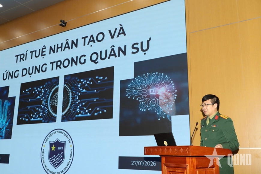 Sáng 27-1, tại Hà Nội, Học viện Kỹ thuật Quân sự (KTQS) tổ chức Hội thảo khoa học “Nghiên cứu, phát triển các sản phẩm trí tuệ nhân tạo (AI) phục vụ hiện đại hóa, phát triển vũ khí trang bị kỹ thuật (VKTBKT), huấn luyện và đào tạo”. Trung tướng, GS, TS Lê Minh Thái, Giám đốc Học viện KTQS chủ trì hội thảo.