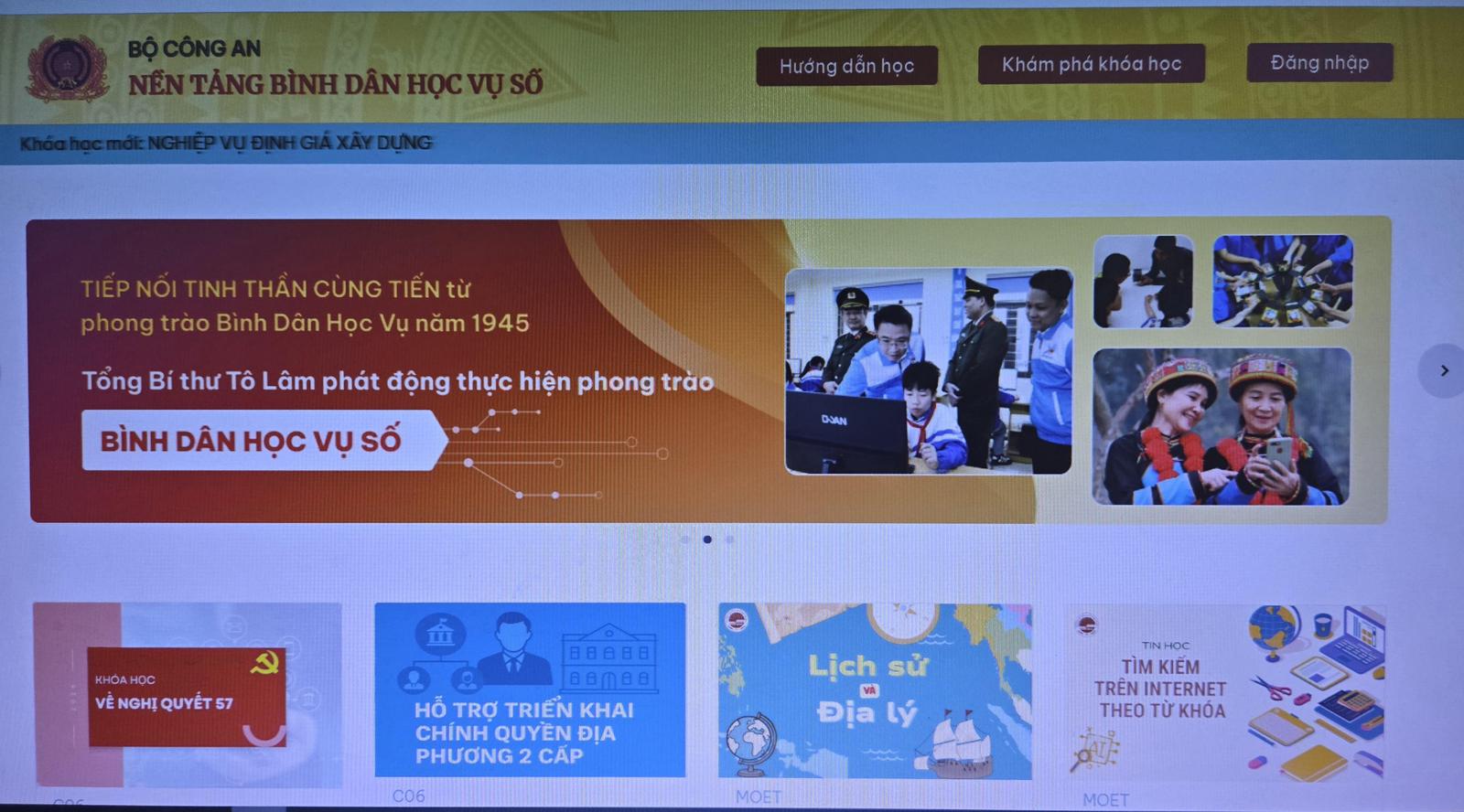 Phong trào “Bình dân học vụ số” đã được triển khai rộng khắp trên toàn cả nước. Ảnh chụp màn hình