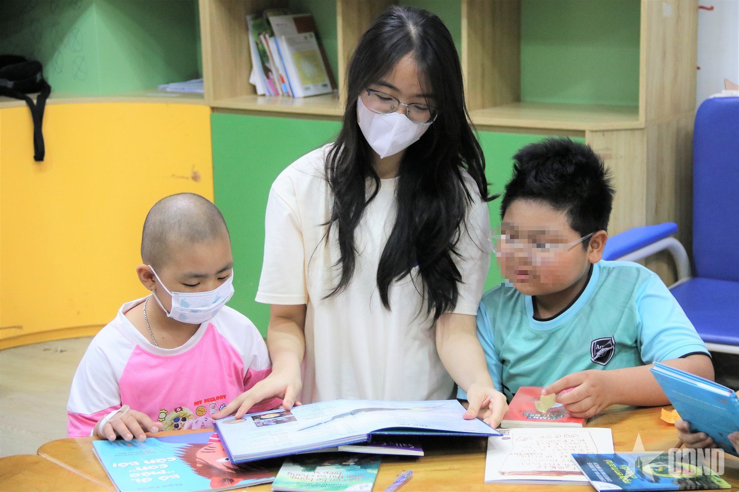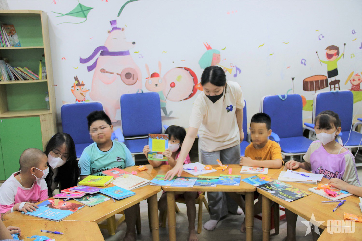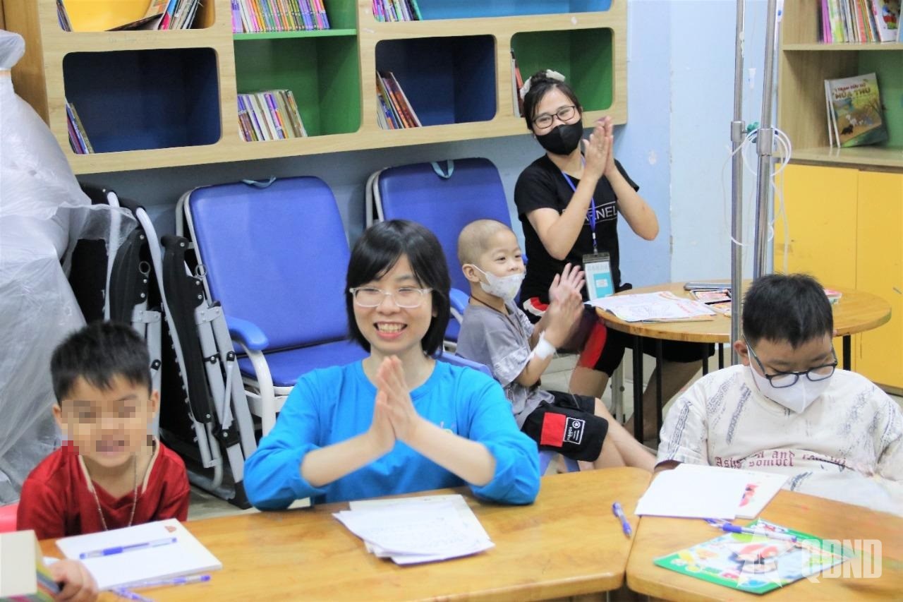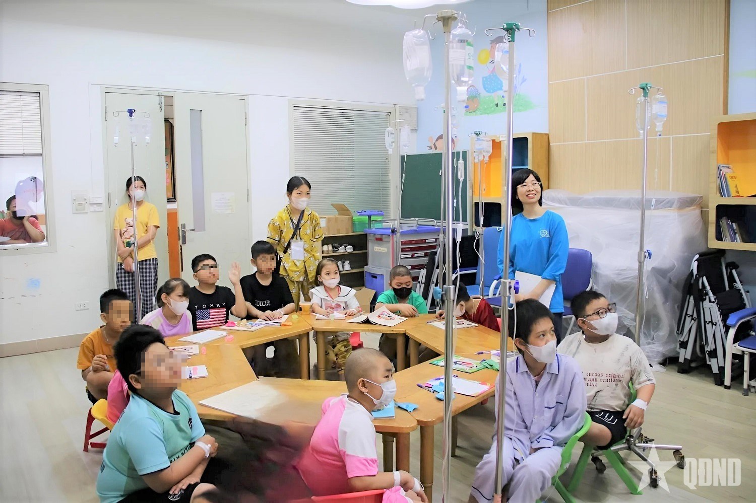 Chị Thuần cho biết, mục tiêu của lớp học là mang lại niềm vui cho các em trong hành trình điều trị, đồng thời tạo không gian để các em kết bạn với nhau. |