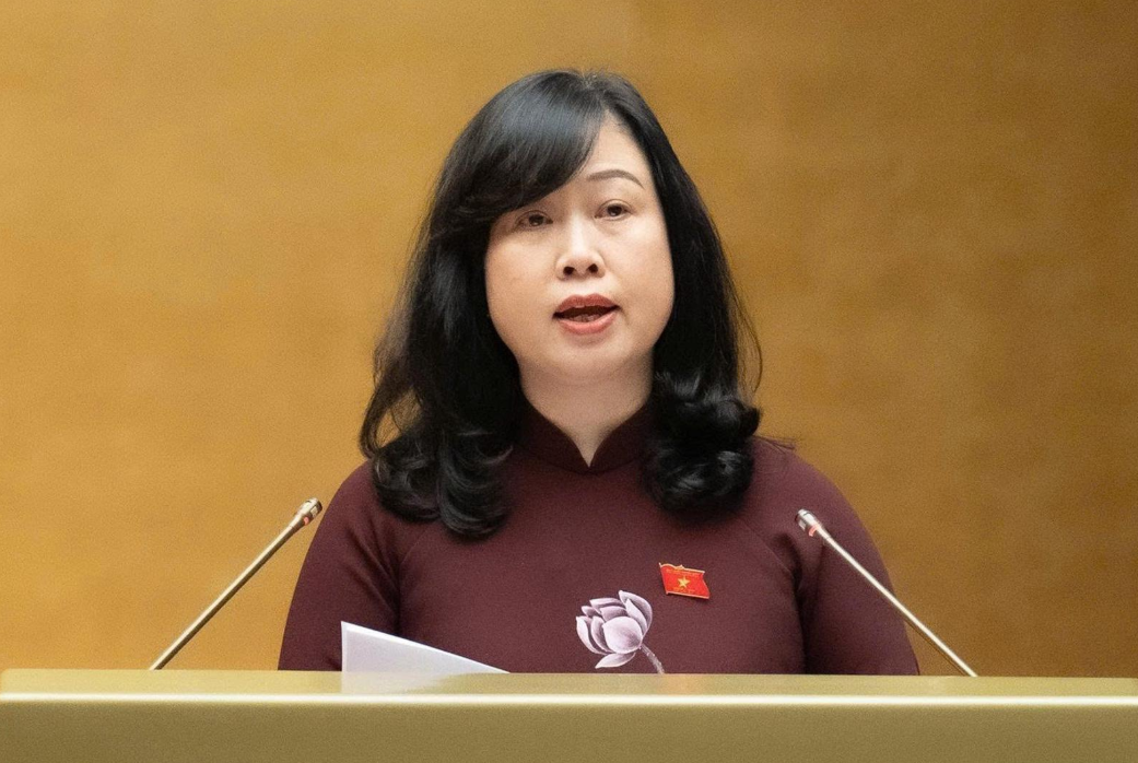 Bộ trưởng Bộ Y tế Đào Hồng Lan báo cáo giải trình trước khi Quốc hội biểu quyết. Ảnh: P.Thắng