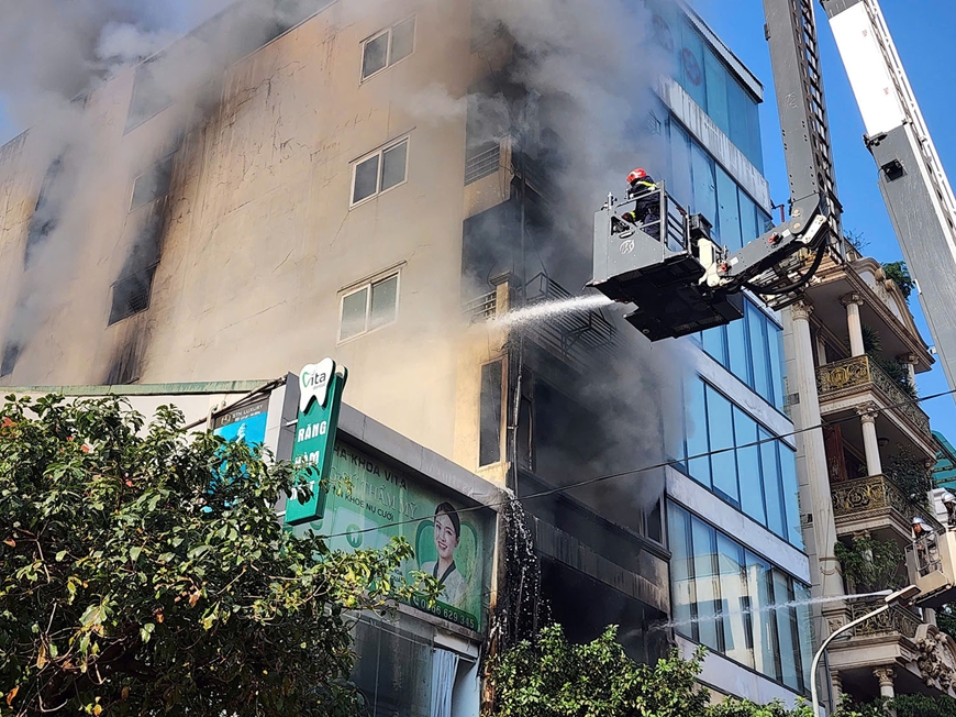 | Hiện trường vụ cháy nhà 6 tầng ở phố Lê Lợi, phường Hà Đông, TP Hà Nội (tháng 1-2026). Ảnh: PHẠM CHIỂU |