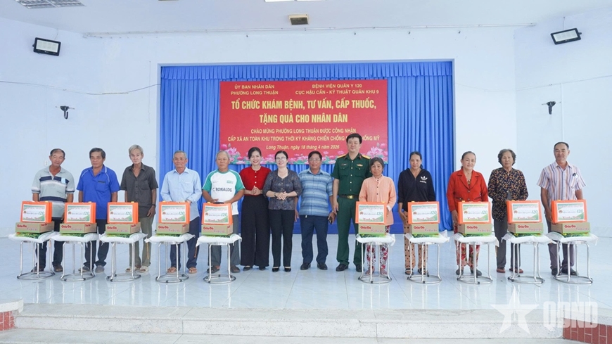 Nhân kỷ niệm 51 năm Ngày giải phóng miền Nam, thống nhất đất nước, Ngày Quốc tế Lao động (1-5), 49 năm ngày truyền thống Bệnh viện Quân y 120 (30-4-1977 / 30-4-2026), ngày 19-4, Bệnh viện Quân y 120 (Cục Hậu cần - Kỹ thuật Quân khu 9) tổ chức đoàn y, bác sĩ khám bệnh, tư vấn và cấp thuốc miễn phí, tặng quà cho các đối tượng chính sách, gia đình thương binh, liệt sĩ, người có công với cách mạng, gia đình khó khăn, trẻ mồ côi trên địa bàn phường Long Thuận (tỉnh Đồng Tháp).