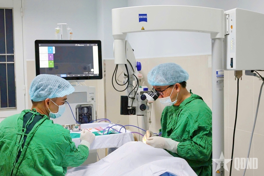 | Y, bác sĩ Bệnh viện Quân y 121 thực hiện phẫu thuật cho bệnh nhân. |
