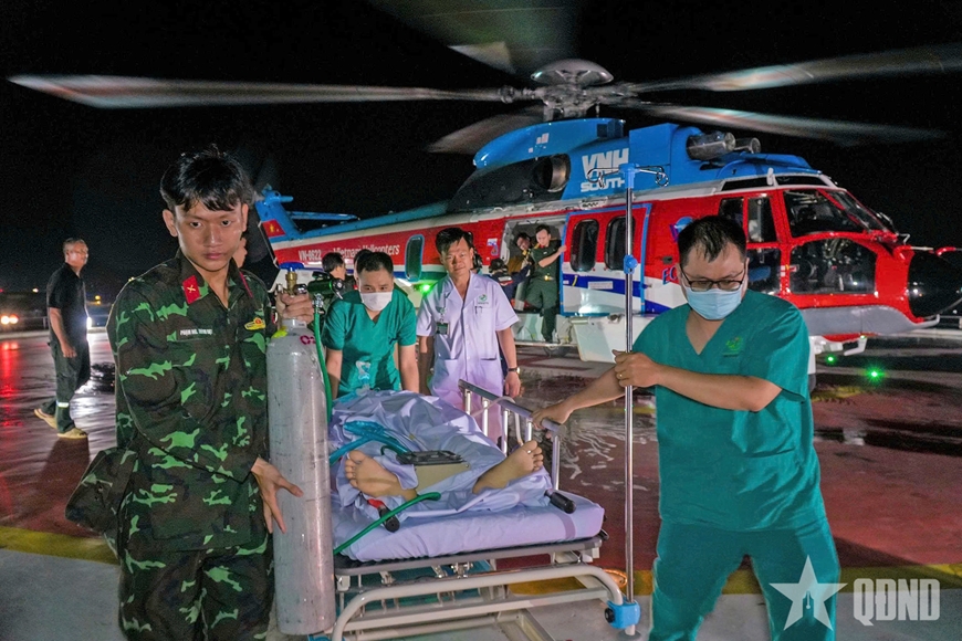 Hơn 14 giờ ngày 9-11, máy bay trực thăng EC225 số hiệu VN 8622 (Binh đoàn 18) cất cánh từ sân bay Tân Sơn Nhất, đưa tổ cấp cứu đường không ra đặc khu Trường Sa.