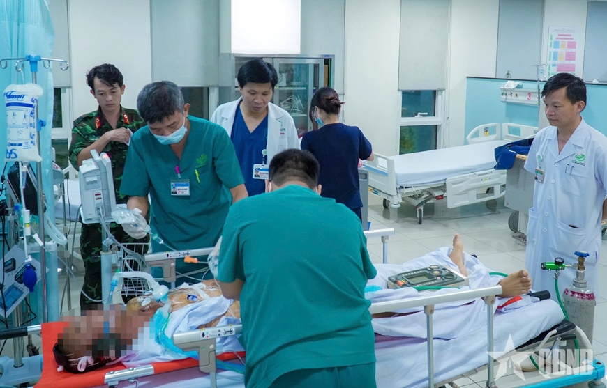 Các bác sĩ chỉ định: Điều trị nội khoa tích cực theo hướng chuyên khoa hồi sức; bù dịch, truyền 2 đơn vị máu toàn phần; sử dụng vận mạch khi có chỉ định. Bệnh nhân tiên lượng rất nặng, nguy cơ tử vong cao, được chỉ định vận chuyển bằng đường không khẩn cấp về đất liền.