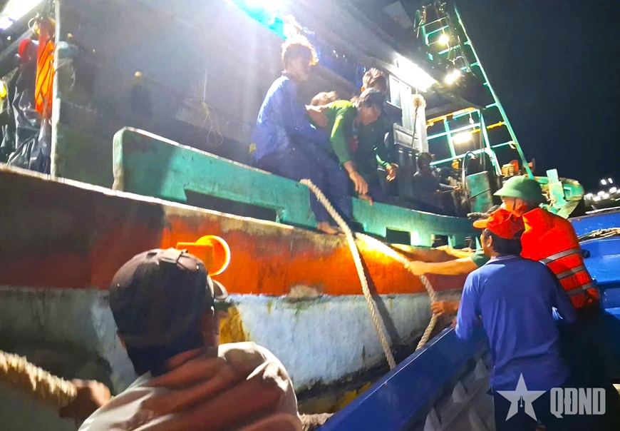 Lực lượng Bộ đội Biên phòng hỗ trợ đưa thuyền viên đến cơ sở y tế cấp cứu.