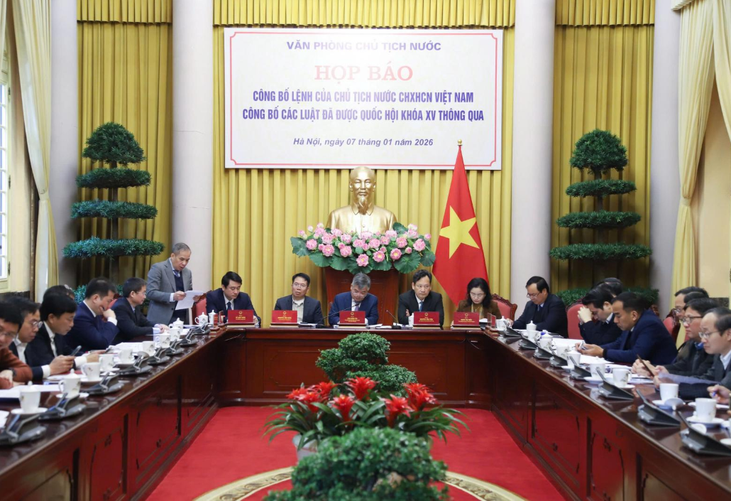 Văn phòng Chủ tịch nước tổ chức họp báo công bố các luật vừa được Quốc hội thông qua, trong đó có Luật sửa đổi, bổ sung một số điều của Luật Giáo dục. Ảnh: Đ.X