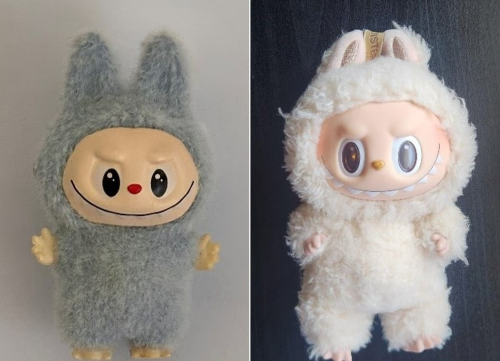 Búp bê Labubu giả (trái) và búp bê thật (phải). Ảnh: productsafety.gov