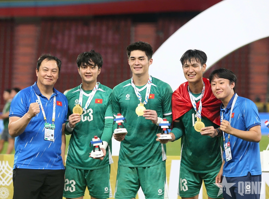 | Thủ môn Trần Trung Kiên (giữa) là cầu thủ cao nhất U23 Việt Nam. Ảnh: VIỆT AN |