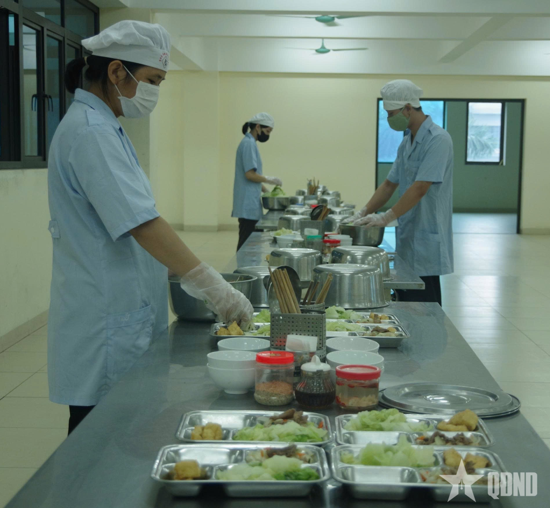 Chuẩn bị bữa ăn bảo đảm dưỡng chất cho cán bộ, học viên ở Hệ 2 (Học viện Chính trị). |