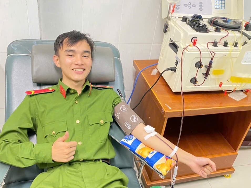 Chiến sĩ Cảnh sát cơ động trực tiếp hiến tiểu cầu