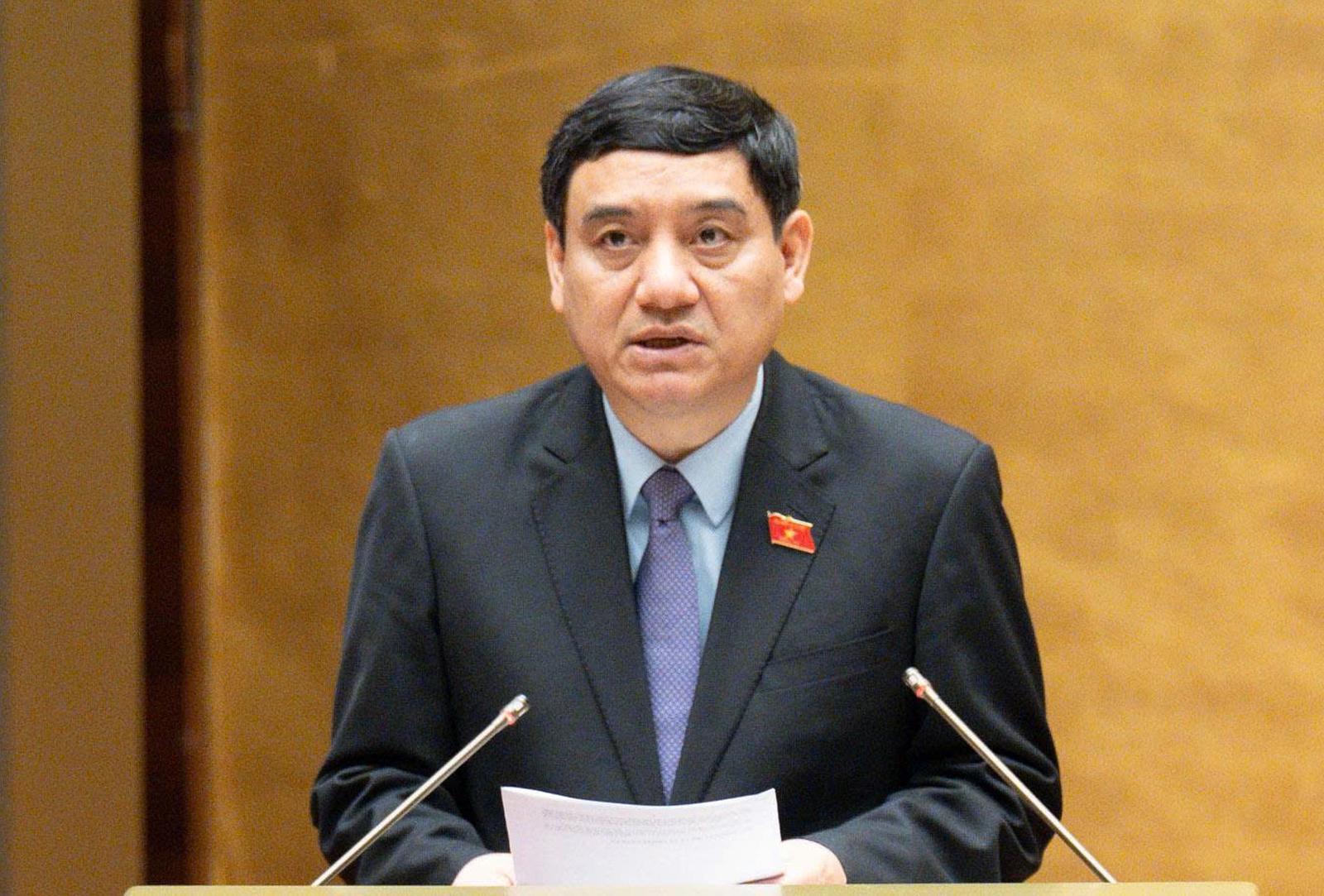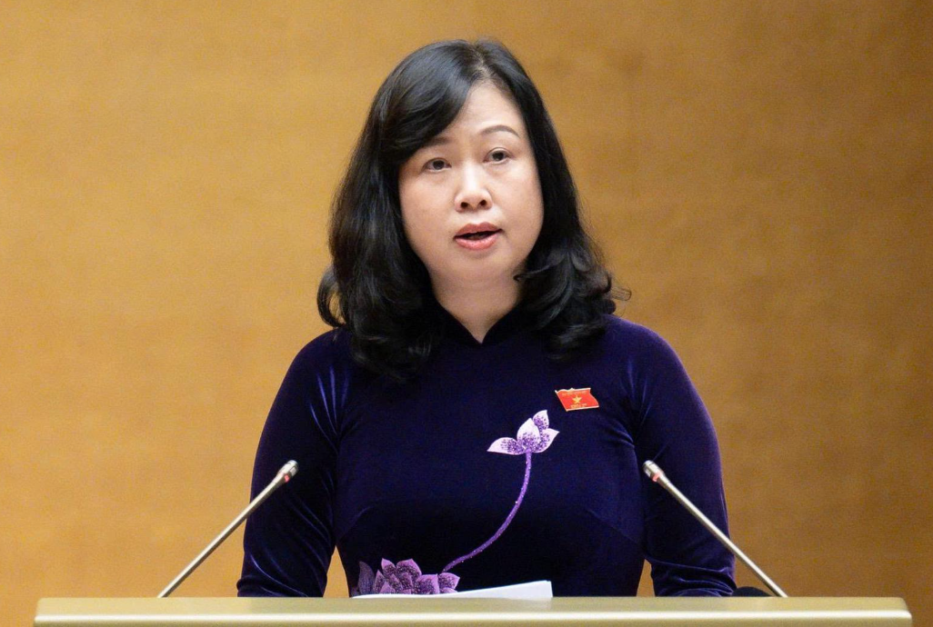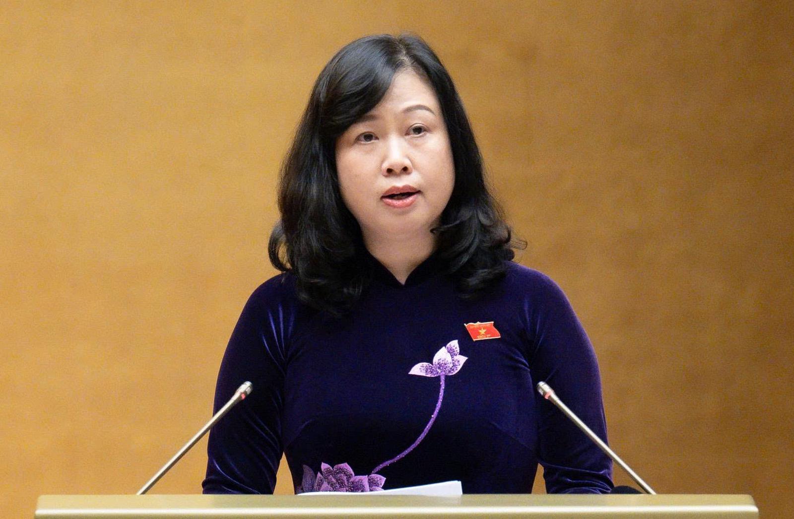 Bộ trưởng Bộ Y tế Đào Hồng Lan trình Quốc hội dự thảo Luật Dân số sửa đổi. Ảnh: P.Thắng