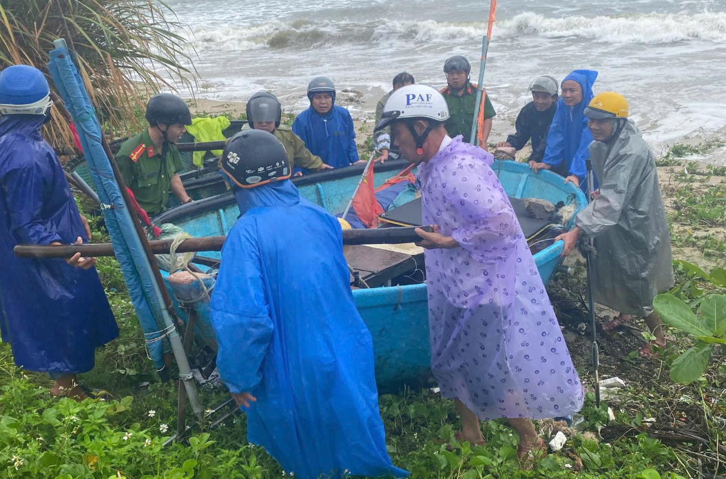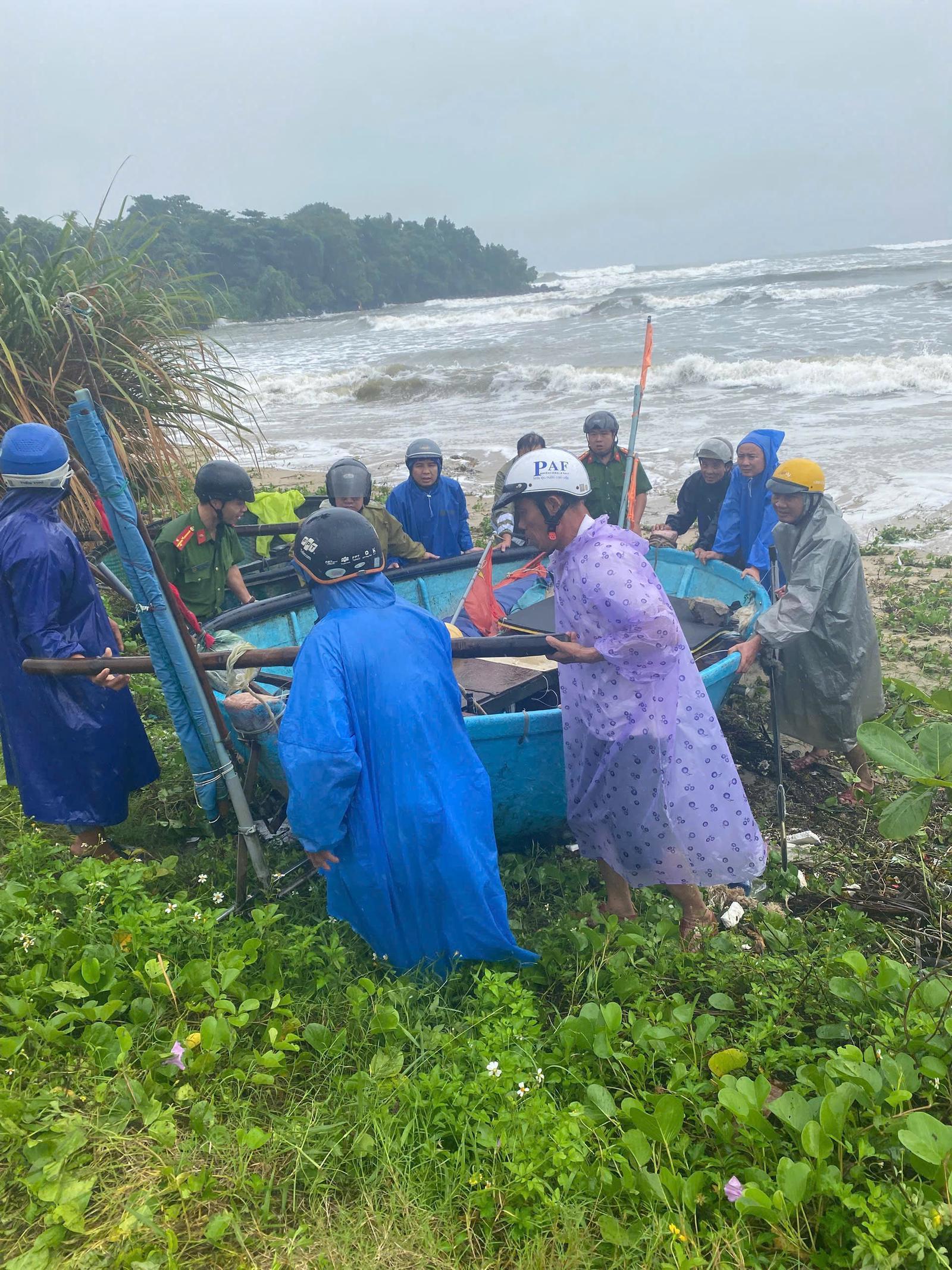 Công an phường Hải Vân triển khai phòng, chống bão, ứng phó với mưa lớn, ngập úng trên địa bàn. Ảnh: CA Đà Nẵng