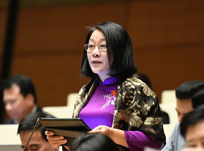 Đại biểu Nguyễn Thị Tuyết Nga (đoàn Quảng Trị) phát biểu. Ảnh: TRỌNG HẢI |