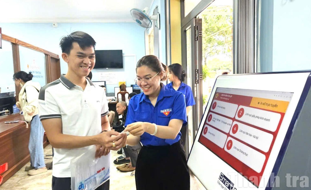 Người dân được hướng dẫn thao tác sử dụng dịch vụ công trực tuyến, từng bước làm quen với các nền tảng số trong giải quyết thủ tục hành chính. Ảnh: NG