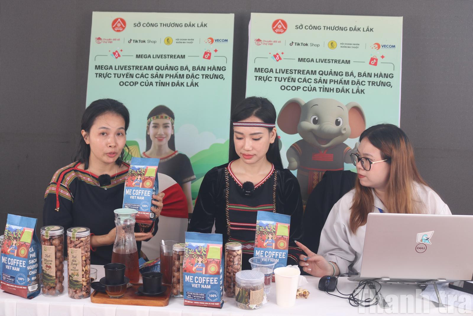 Doanh nghiệp Đắk Lắk đẩy mạnh hoạt động livestream bán hàng trên nền tảng số, góp phần nâng cao hiệu quả kinh doanh. Ảnh: NG