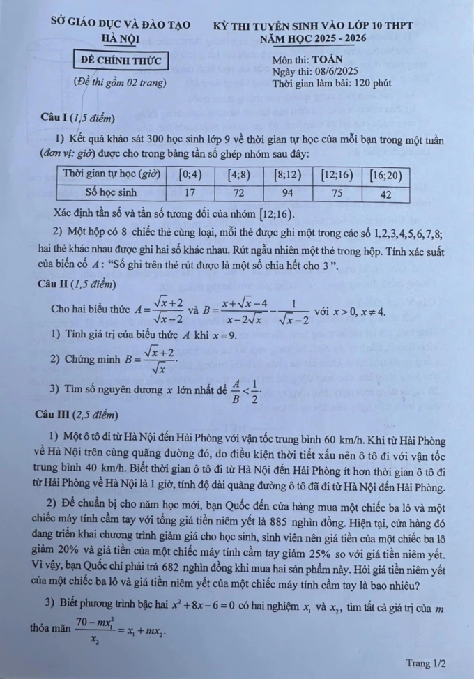 | Đề thi môn Toán vào 10 Hà Nội năm 2025. |
