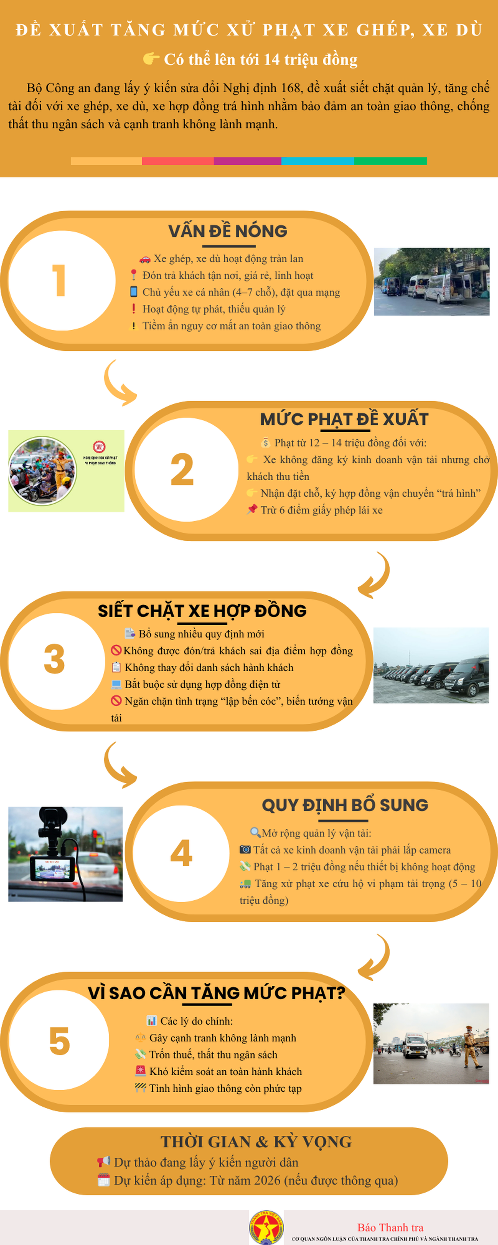 Bộ Công an đang lấy ý kiến sửa đổi Nghị định 168, trong đó đề xuất siết chặt quản lý và tăng mức xử phạt đối với xe ghép, xe dù, xe hợp đồng “trá hình”. Các hành vi vi phạm có thể bị phạt từ 12–14 triệu đồng, kèm trừ điểm giấy phép lái xe, nhằm bảo đảm an toàn giao thông, chống thất thu ngân sách và lập lại trật tự vận tải.