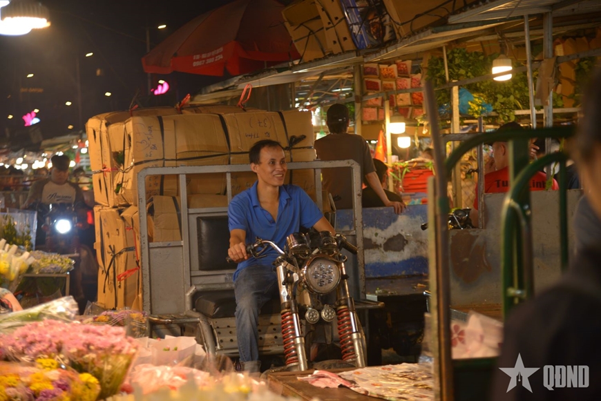 | Sau giờ làm công nhân ban ngày, anh Mạnh vẫn cố gắng thức đến khuya để ra chợ lấy hoa về cho vợ bán hàng tạp hóa vào sáng mai. “Tất cả là vì gia đình, con cái của mình hết. Bây giờ còn sức khỏe nên cứ cố được lúc nào là cố, ngủ ít một chút cũng không sao, miễn là đỡ đần được cho vợ và giúp kinh tế gia đình ổn định hơn”, anh Mạnh vui vẻ tâm sự. |