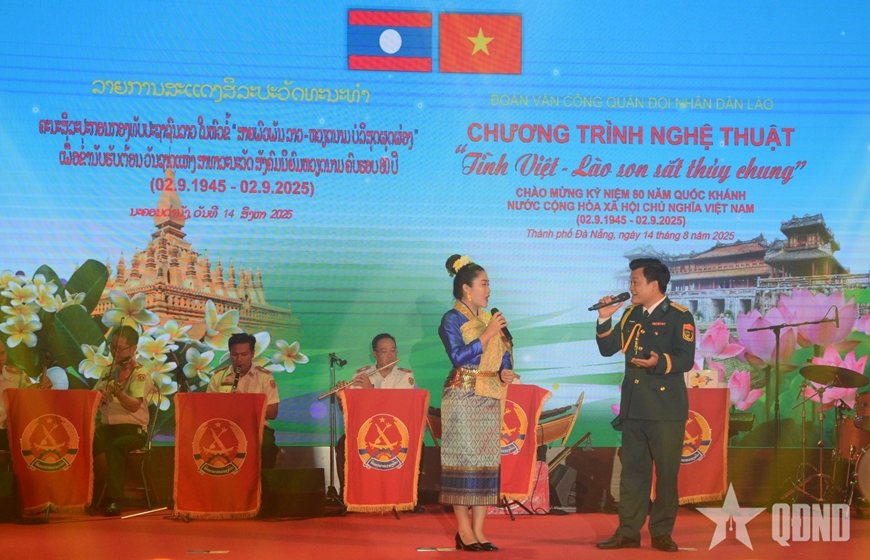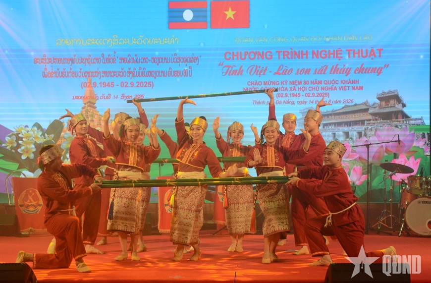 Chương trình nghệ thuật với chủ đề “Tình Việt - Lào son sắt, thủy chung” do Đoàn văn công QĐND Lào biểu diễn, gồm các tiết mục ca múa nhạc đặc sắc mang đậm bản sắc văn hóa Lào, các ca khúc cách mạng ca ngợi tình đoàn kết, hữu nghị giữa hai dân tộc, hai quân đội.