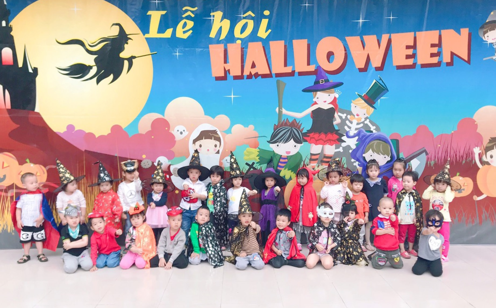 Trẻ mầm non hào hứng khi được hóa trang trong lễ hội Halloween.