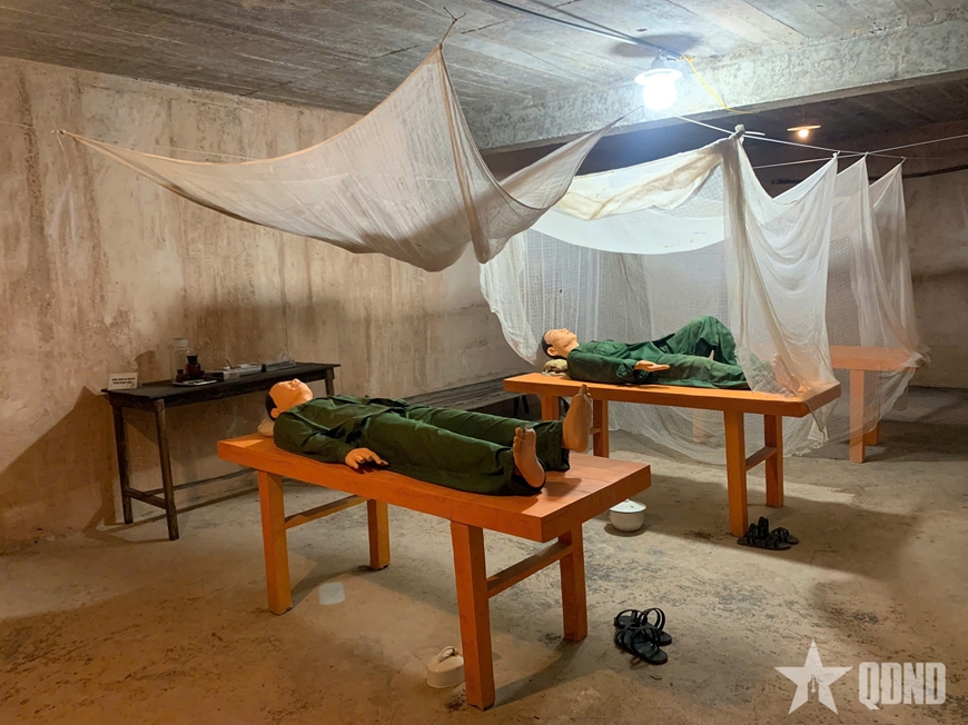 Dạo quanh một vòng, chúng tôi rất khâm phục về thiết kế độc đáo nơi đây. Công trình được xây dựng khép kín, nằm trọn trong hang động tự nhiên, chiều dài giữa hai động khoảng 200m. Qua 3 lớp cửa dày đặc là bệnh viện gồm 3 tầng, trong đó tầng 1 là khu chính với 14 phòng chức năng như phòng mổ, phòng chờ, phòng thuốc, tầng 2 là rạp chiếu phim và phòng tập, kiểm tra thể lực, tầng 3 là sảnh đón tiếp, phòng nghỉ bộ đội.
