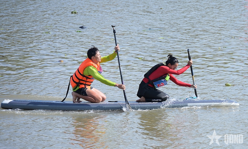 | Các vận động viên tranh tài nội dung chèo Sup đôi nam, nữ phối hợp. |