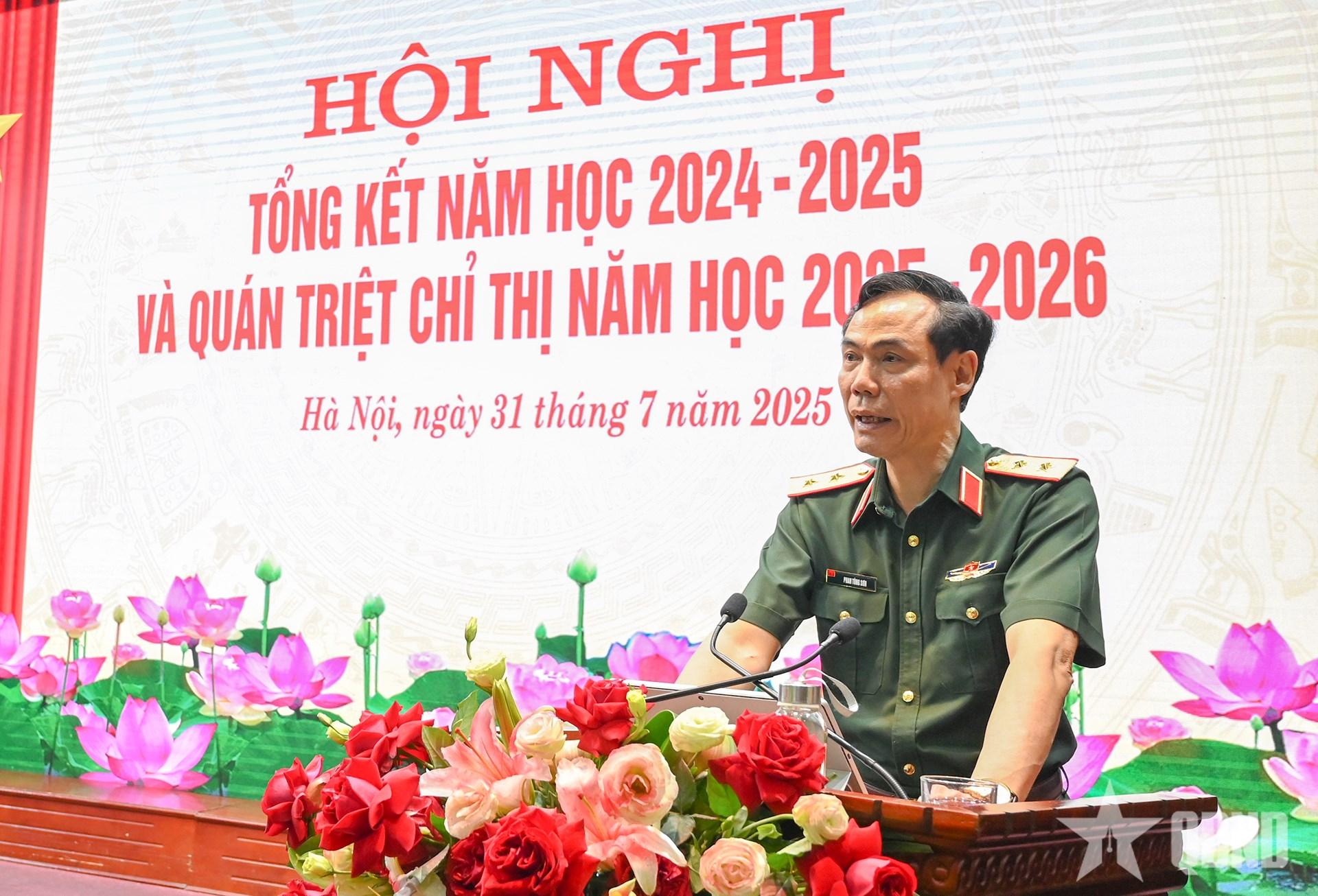 Sau khi quán triệt chỉ thị năm học 2025-2026, kết luận hội nghị, Trung tướng, GS, TS Phan Tùng Sơn biểu dương kết quả nổi bật mà các cơ quan, khoa, ban, đơn vị trực thuộc Học viện đạt được trong năm học vừa qua, đồng thời nhấn mạnh: Thời gian tới, toàn Học viện tiếp tục quán triệt và triển khai thực hiện có hiệu quả các nghị quyết, đề án, kế hoạch về giáo dục, đào tạo; tập trung lãnh đạo, chỉ đạo hoàn thành tốt nhiệm vụ giáo dục-đào tạo với phương châm “Chất lượng đào tạo của nhà trường là khả năng sẵn sàng chiến đấu của đơn vị”; nâng cao chất lượng, tính ứng dụng trong nghiên cứu khoa học; giữ vững ổn định chính trị; bảo đảm tốt hậu cần, tài chính cho các nhiệm vụ; đẩy mạnh cải cách hành chính và chuyển đổi số trên các mặt công tác…