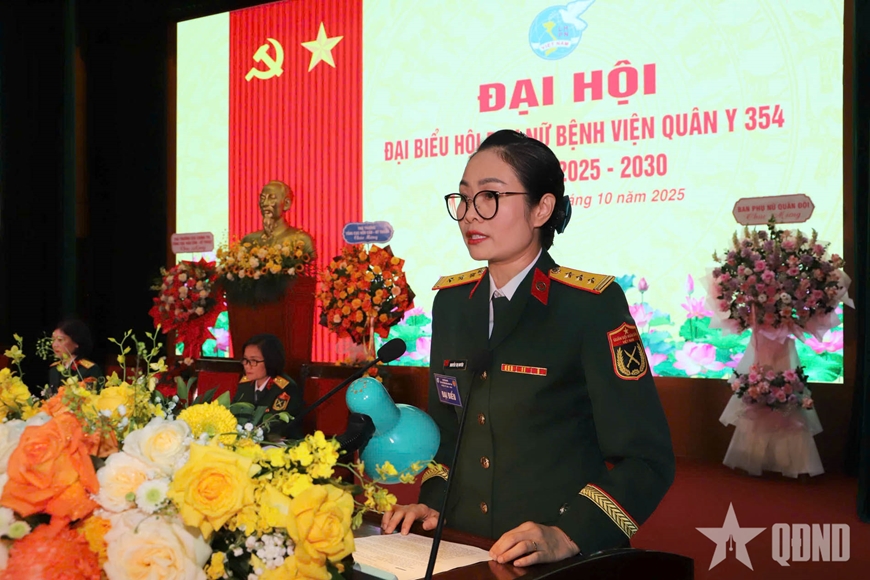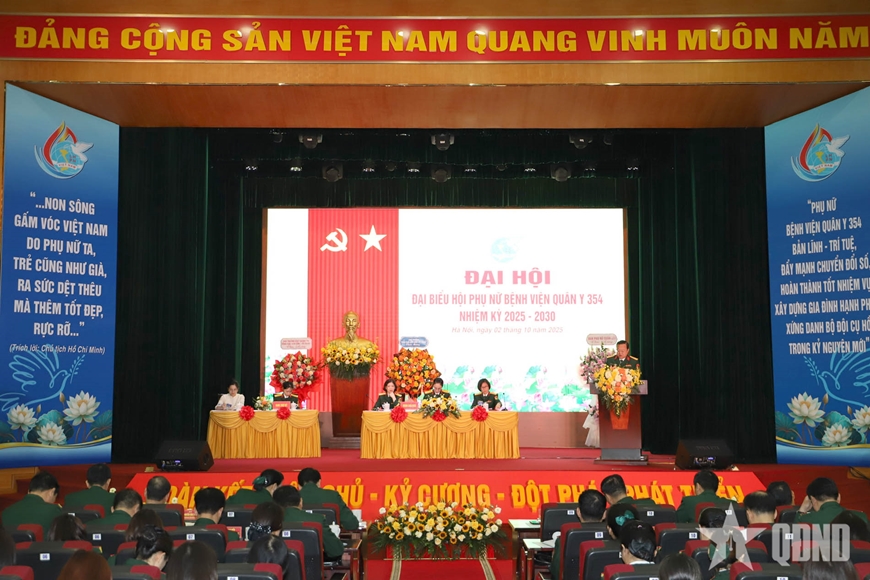 Sáng 2-10, Bệnh viện Quân y 354 (Tổng cục Hậu cần - Kỹ thuật) tổ chức Đại hội đại biểu Hội Phụ nữ nhiệm kỳ 2025-2030. Đại hội được Thường vụ Đảng ủy Tổng cục Hậu cần - Kỹ thuật lựa chọn làm trước, rút kinh nghiệm cho các đơn vị trực thuộc Tổng cục khu vực phía Bắc.