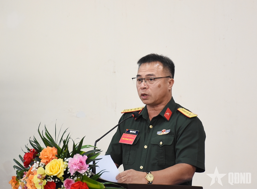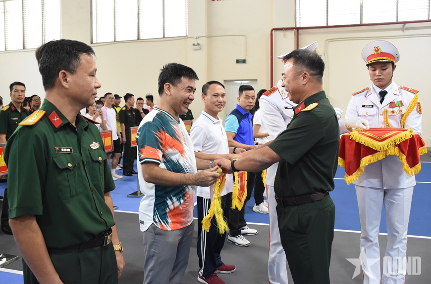 | Đại tá Trịnh Như Huệ, Phó chánh Văn phòng Tổng cục Chính trị QĐND Việt Nam, Trưởng ban tổ chức giải trao cờ lưu niệm tặng đại diện các đội tham dự. |