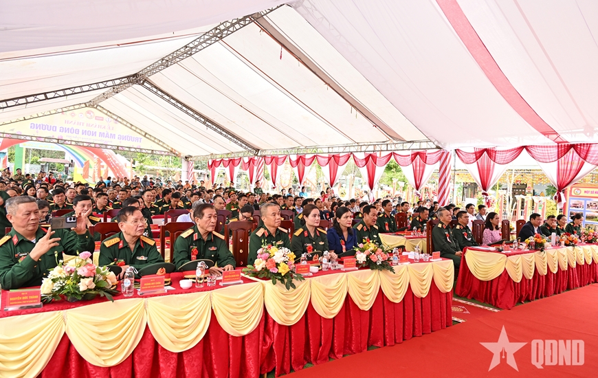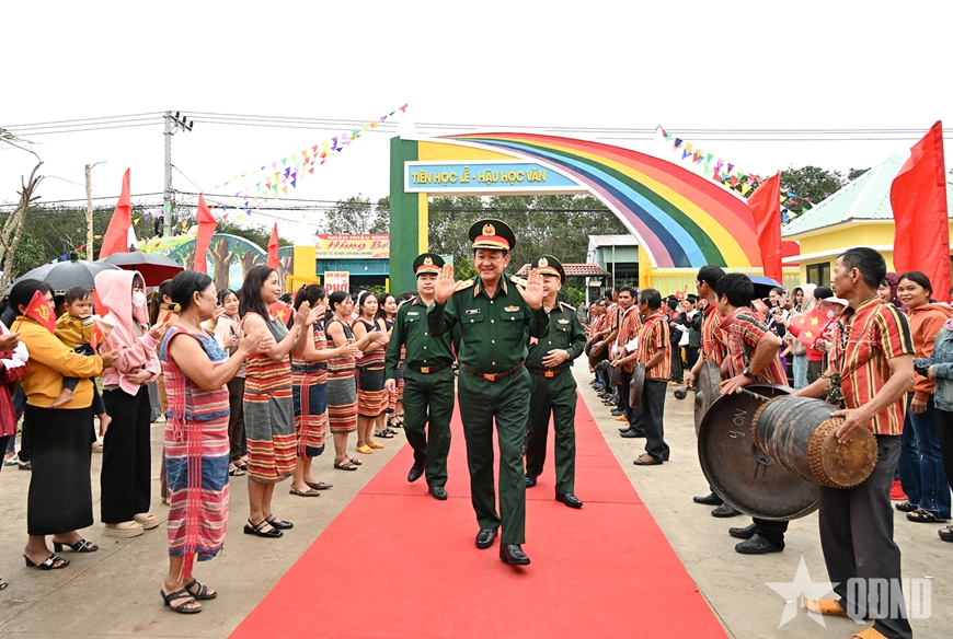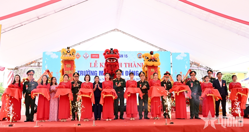 Sáng 19-11, Thượng tướng Võ Minh Lương, Ủy viên Trung ương Đảng, Ủy viên Thường vụ Quân ủy Trung ương, Thứ trưởng Bộ Quốc phòng dự Lễ khánh thành Trường Mầm non Đông Dương (Đoàn Kinh tế - Quốc phòng 732, Binh đoàn 15).
