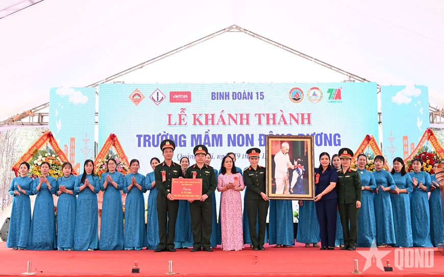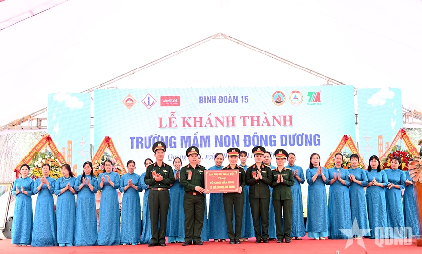Dịp này, Cục Chính sách - Xã hội (Tổng cục Chính trị Quân đội nhân dân Việt Nam), Ủy ban Dân số, Gia đình và Trẻ em Bộ Quốc phòng, Ban Phụ nữ Quân đội, Thư viện Quân đội và các doanh nghiệp, địa phương đã trao nhiều phần quà tặng Trường Mầm non Đông Dương. Bộ tư lệnh Binh đoàn 15 trao bằng khen tặng các tập thể có thành tích xuất sắc trong thiết kế, thi công công trình Trường Mầm non Đông Dương.