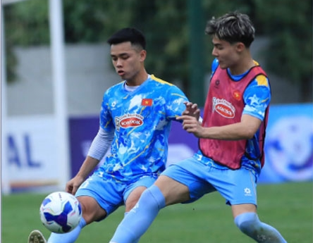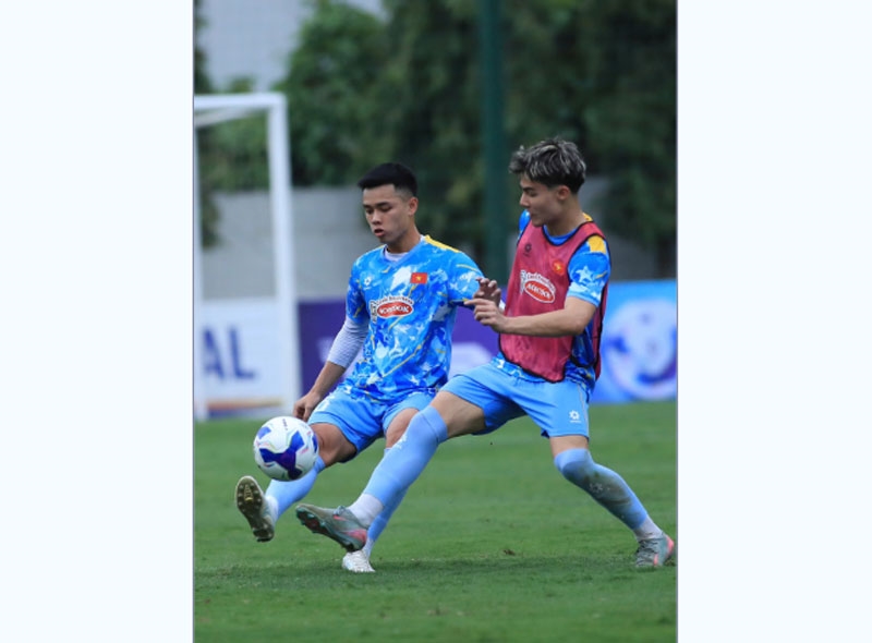 | Cầu thủ Việt kiều Moric (bên phải) nỗ lực thể hiện khả năng ở U.23 Việt Nam. Ảnh: VFF |