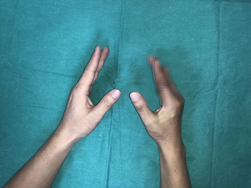 Sau phẫu thuật, vết thương đã liền, ngón tay hồng, sống hoàn toàn, người bệnh đã có thể cắt chỉ và rút kim cố định. Người bệnh đang được tập phục hồi chức năng để lấy lại khả năng vận động và cảm giác của ngón tay.