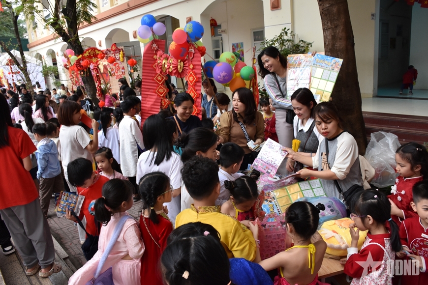 Học sinh hào hứng tham gia Hội chợ "Xuân yêu thương" năm 2026 của Trường Tiểu học Tân Định. |