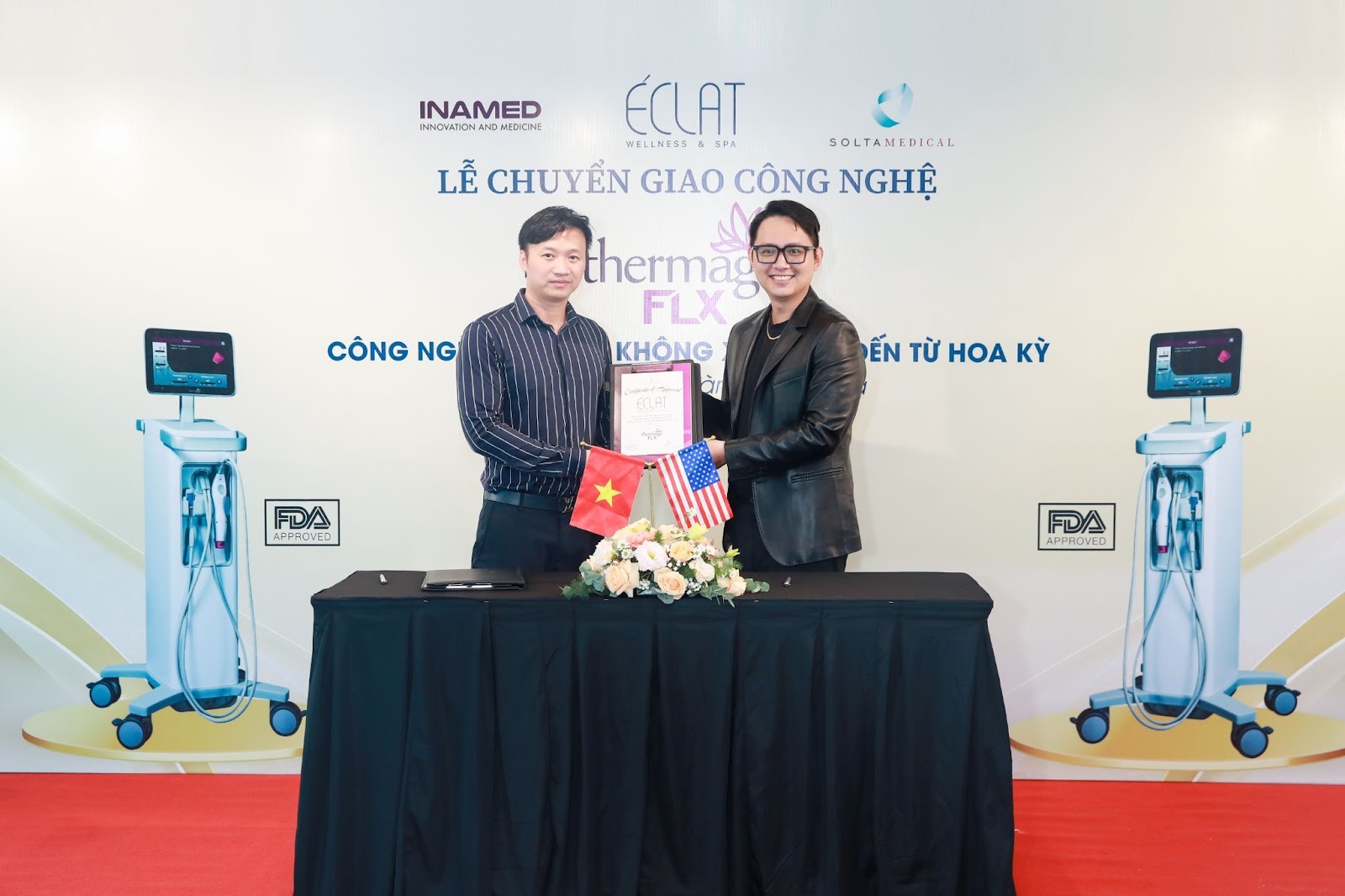 Ngày 15/10/2025, tại ÉCLAT Wellness & Spa tổ chức lễ ký kết hợp tác và chuyển giao công nghệ Thermage FLX cùng Đại diện Inamed. Sự kiện đánh dấu cột mốc quan trọng trong hành trình đưa công nghệ trẻ hóa da không xâm lấn hàng đầu thế giới đến gần hơn với khách hàng Việt Nam, khẳng định vị thế tiên phong của ÉCLAT Wellness & Spa trong lĩnh vực thẩm mỹ công nghệ cao.