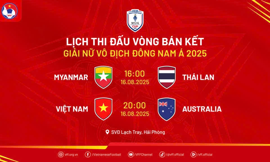 Theo lịch thi đấu bán kết, đội tuyển nữ Việt Nam gặp U23 Australia vào lúc 20 giờ ngày 16-8. Trước đó, Thái Lan gặp Myanmar vào lúc 16 giờ cùng ngày. Cả 2 trận đấu này đều được tổ chức trên sân Lạch Tray (Hải Phòng).