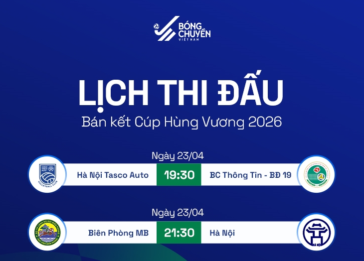 | Lịch thi đấu bán kết Giải bóng chuyền Cúp Hùng Vương năm 2026. Ảnh: Bóng chuyền Việt Nam |
