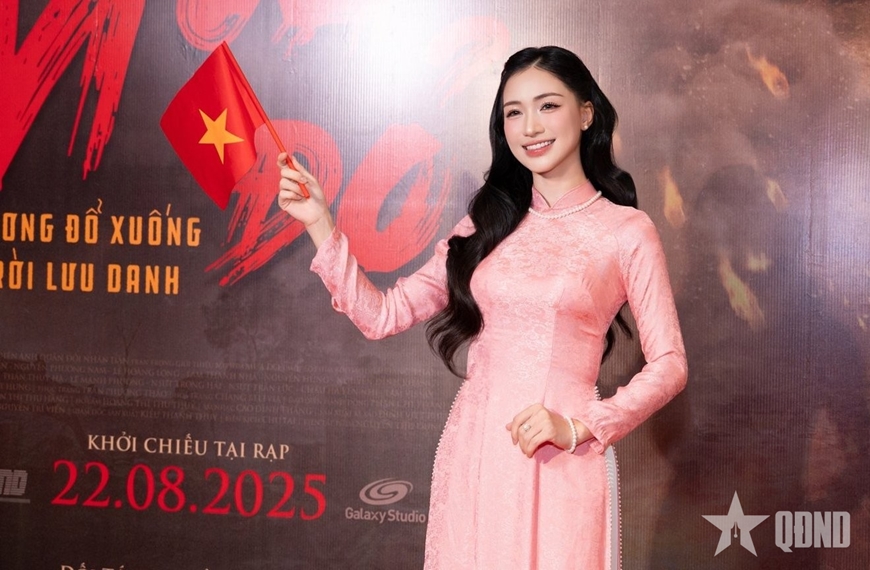 Hòa Minzy gửi lời cổ vũ khán giả hãy tới xem phim chiến tranh cách mạng "Mưa đỏ" của Điện ảnh Quân đội thực hiện. |